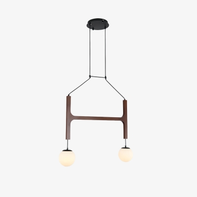 Novalune Multi-Light Glass Globe Chandelier with Wood Frame - Japanese Zen Style for Living Room